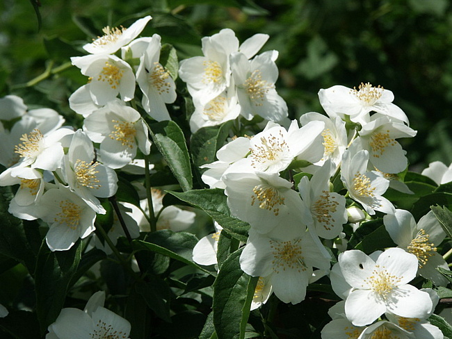 Корневая система хорошо развита. Обычно от корневой шейки отрастают несколько хорошо развитых прямостоячих или расходящихся в стороны побегов. Верхние части ветвей прямые или пониклые. Листья цельнокрайние, заостренные, приближающиеся к яйце видной форме. Величина и форма листьев у разных форм чубушника сильно варьирует, расположение супротивное. Цветки простые или махровые, белые, кремовые, реже светло-желтые, диаметром 2-6 см. Образуются они на верхушках ветвей прошлогоднего прироста, располагаются одиночно или собраны по пять-девять в кистеобразные соцветия. Цветение июнь-июль